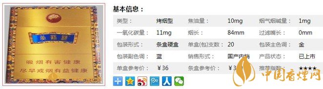 | 類(lèi)型 :烤煙型 | 焦油量 :10mg | 煙氣煙堿量 :1mg | 一氧化碳量 :11mg |