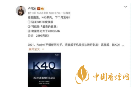以上是小編整理的有關(guān)紅米k40pro的價(jià)格及官方報(bào)價(jià)的最新信息,相信在座的朋友們聽(tīng)到小編的介紹有所認(rèn)識(shí),但是小編在這里提醒一句還是要根據(jù)自身情況考慮哦,更多最新最實(shí)用的資訊請(qǐng)持續(xù)關(guān)注香煙網(wǎng)。