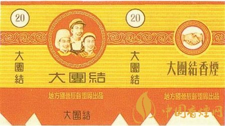 這一時(shí)期出品的“大團(tuán)結(jié)”煙標(biāo)也有很多,如太原煙草廠出品的“大團(tuán)結(jié)”煙標(biāo),主版于花卉圓圖內(nèi)印有“大團(tuán)結(jié)”字樣;地方國營(yíng)辰谿煙廠出品的“大團(tuán)結(jié)”煙標(biāo),主版圖案為兩名女性和一名男性的人物形象,副版是兩只手緊緊握在一起的畫面。