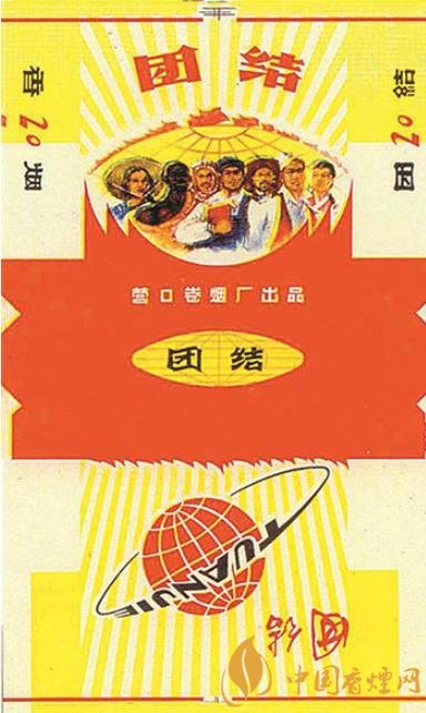 上世紀(jì)60年代,團(tuán)結(jié)被賦予了全新的含義。如國營(yíng)天津卷煙廠出品的“團(tuán)結(jié)”煙標(biāo),主版于蒼勁有力的“團(tuán)結(jié)”二字下方,描繪的是代表亞、非、拉人民的三個(gè)人物每人手持一本有著典型時(shí)代特征的“紅寶書”,齊心協(xié)力共舉一個(gè)火炬的場(chǎng)景,副版圖案是一個(gè)正在熊熊燃燒的大火炬。營(yíng)口卷煙廠則出品了多種版別的“團(tuán)結(jié)”煙標(biāo),其中一種的主版于插有無數(shù)面紅旗的地球映襯下,展現(xiàn)出世界上不同膚色、不同民族的人們走到一起的畫面;副版是“團(tuán)結(jié)”的漢語拼音“TUANJIE”字樣環(huán)繞地球的畫面,反映了世界各國人民的大團(tuán)結(jié)。